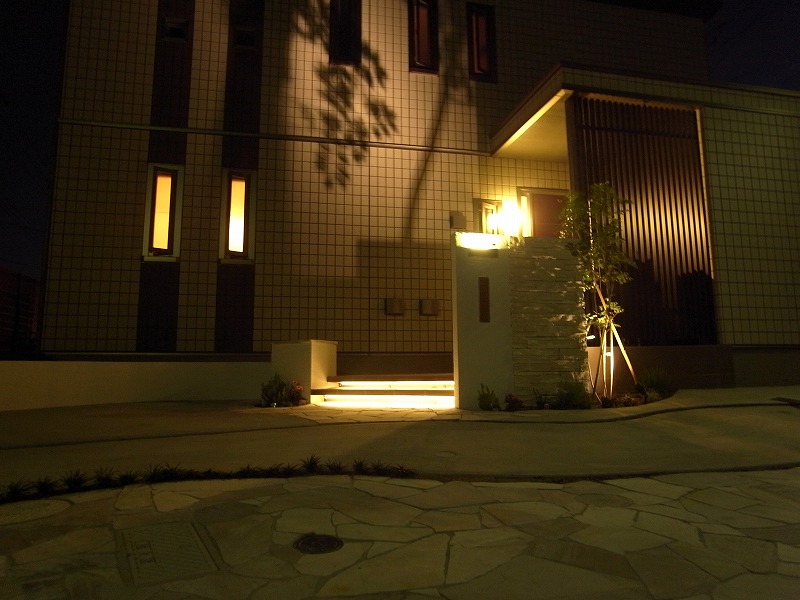 Home > Gallery > 間接照明でリゾート感のあるアプローチを