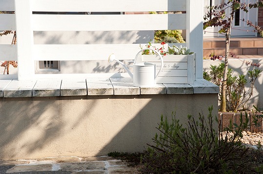 雑貨と植物と、とりどりの砂利石が、ヨーロッパ郊外の雰囲気を醸し出します。