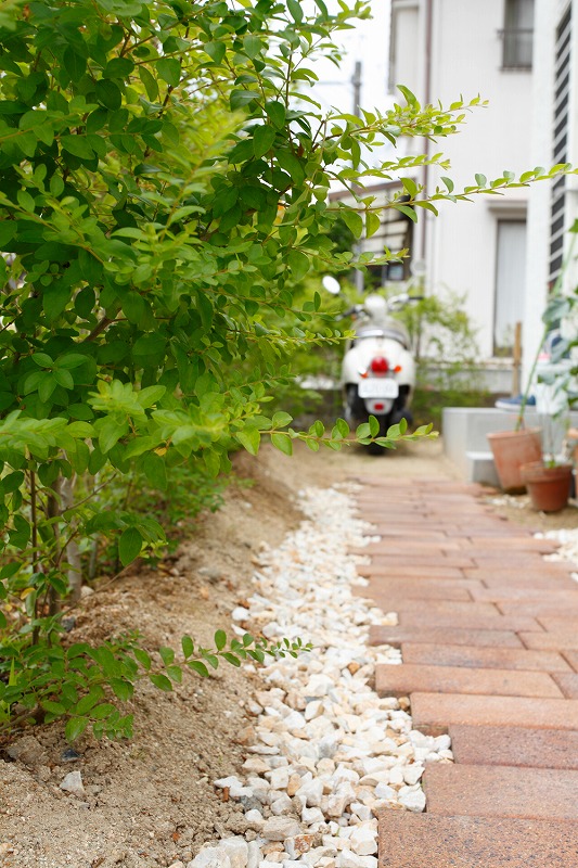 お庭から続くレンガの小道